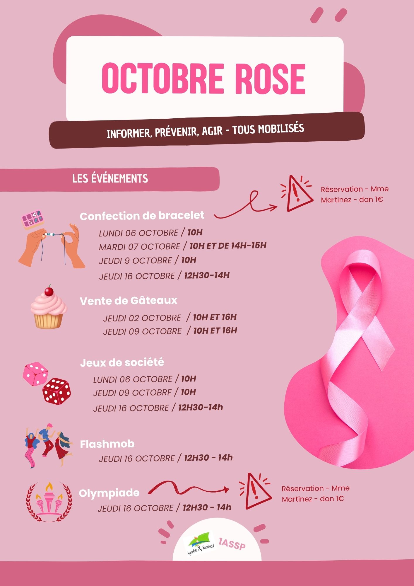 Les élèves de 1ASSP ont travaillé tout au long de l’année pour préparer cet événement. Leur objectif est de vous proposer des activités variées, conviviales et ludiques, tout en vous transmettant des informations essentielles sur cette cause qui nous concerne toutes et tous.